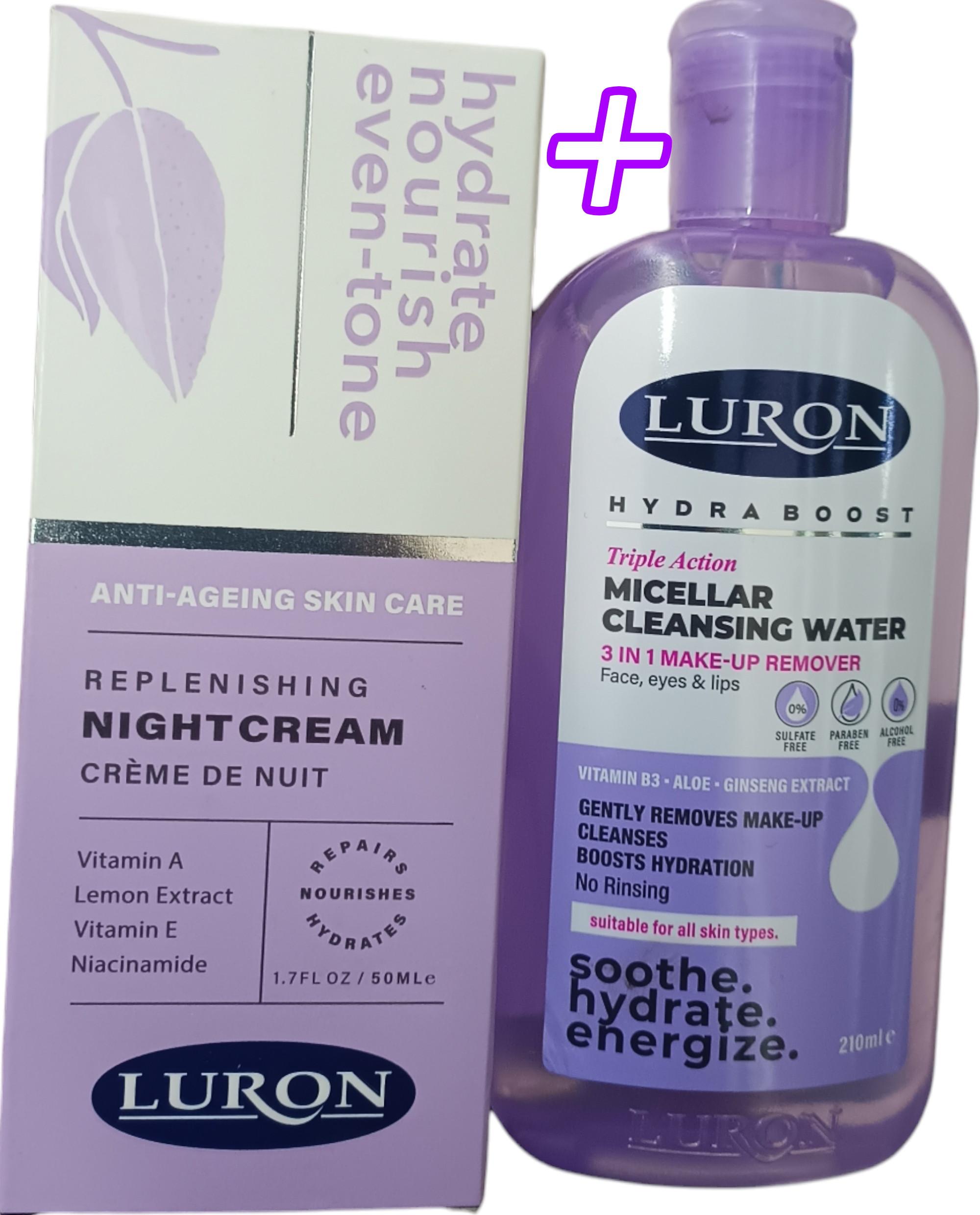 Luron Anti-Ageing Skin Care REPLENISH NIGHT CREAM + Micellar Cleansing Water 3 IN 1 MAKE-UP REMOVER